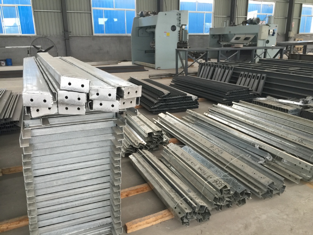 (2) 立柱:立柱是用來(lái)加固倉(cāng)體的。立柱采用Z型鋼。是標(biāo)準(zhǔn)化生產(chǎn)的。兩立柱之間采用連接板連接。