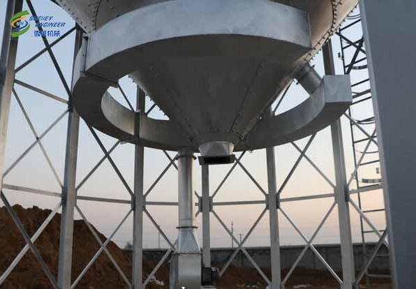 鋼錐底 φ5.5 錐底容積21m³,環(huán)梁高度3.66m,錐底部分主要包括錐底板,環(huán)梁,柱腳、拉筋,錐底噴漆處理。