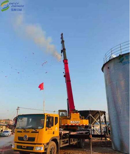 此項目為山東泰安本地糧貿(mào)公司2臺200噸玉米小麥倉項目,客戶常年收售糧食,周轉(zhuǎn)快,需要暫存糧食,遂決定建設(shè)鋼板倉項目。雪萊鋼板倉廠家設(shè)計的鋼板倉具有占地面積小、節(jié)省人工(運(yùn)營成本低)機(jī)械化程度高等優(yōu)點(diǎn)。裝配式鋼板倉可拆裝、可移動更換場地而且可以二手轉(zhuǎn)讓,并且產(chǎn)品回報周期短,助力企業(yè)發(fā)展。鋼板倉產(chǎn)品上檔次。依靠鋼板倉配套的通風(fēng)系統(tǒng)和測溫系統(tǒng)使鋼板倉里糧食更加安全、可 控。大大減少企業(yè)糧食如蟲害、鳥害等,不會像以往不能及時發(fā)現(xiàn)霉變。