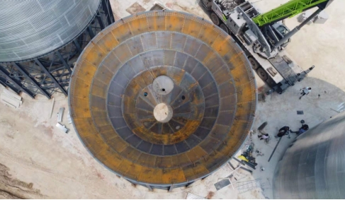 安裝團隊憑借成熟的施工經驗,嚴格把控各道工序,用高效的施工速度及高質量的施工工藝,完成了兩個1500噸鋼板錐形底倉項目的安裝,設備自投入運行使用到目前運行良好,無一次質量投訴異常,成功得到了客戶的高度贊賞。
