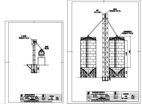此項目為2套300T小麥鋼板倉,其工藝流程如下:糧食經卸糧坑輸送到1號提升機中,糧食經1號提升機輸送到振動篩中,經過振動篩將利用物料與雜質顆粒大小不同的原理,將物料中的雜質,分離出去,再經提升機輸送到頂部,配合電動三通,