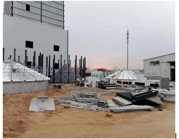 500T錐底鋼板倉主要用于存儲(chǔ)玉米。具有機(jī)械化程度高、易出料,使用壽命長。整倉容積:768m³;直徑: 8.2m;環(huán)梁高:5.53m,倉檐高:17.39m,總高:19.29m;錐頂角: 25。倉頂蓋板為δ1.0mm熱鍍鋅板,選用國產(chǎn)優(yōu)質(zhì)熱鍍鋅板,倉頂上設(shè)置自然通風(fēng)窗、人孔、爬梯,倉頂用航空膠泥和防水墊圈密封,沿倉檐四周設(shè)有安全防護(hù)欄。